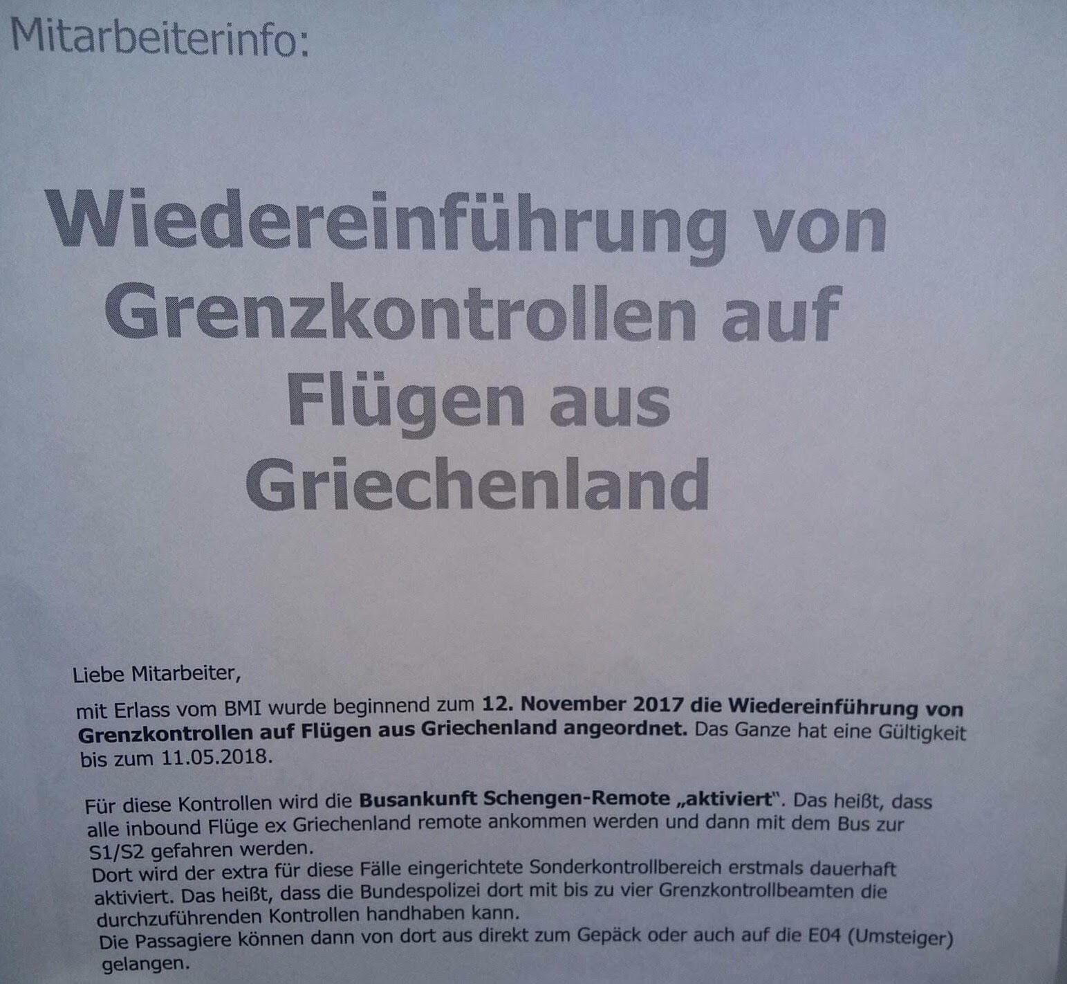 Το Ομοσπονδιακό υπουργείο Εσωτερικών της Γερμανίας, αναγκάστηκε, όχι απλώς να επεκτείνει για έξι ακόμα μήνες τους συνοριακούς ελέγχους με την Ελλάδα, αλλά να θέσει σε εφαρμογή για πρώτη φορά ειδικά μέτρα, ώστε να αποτρέψει την είσοδο στην χώρα παράνομων και παράτυπων μεταναστών με πλαστά δελτία αστυνομικής ταυτότητας από την Ελλάδα.