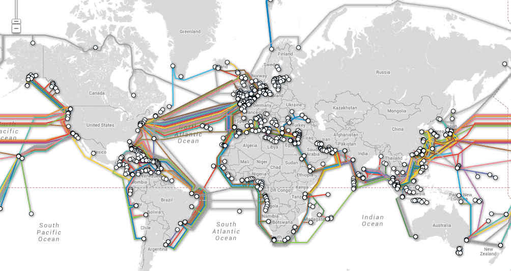 Ο παγκόσμιος χάρτης των υποβρύχιων καλωδίων επικοινωνιών.