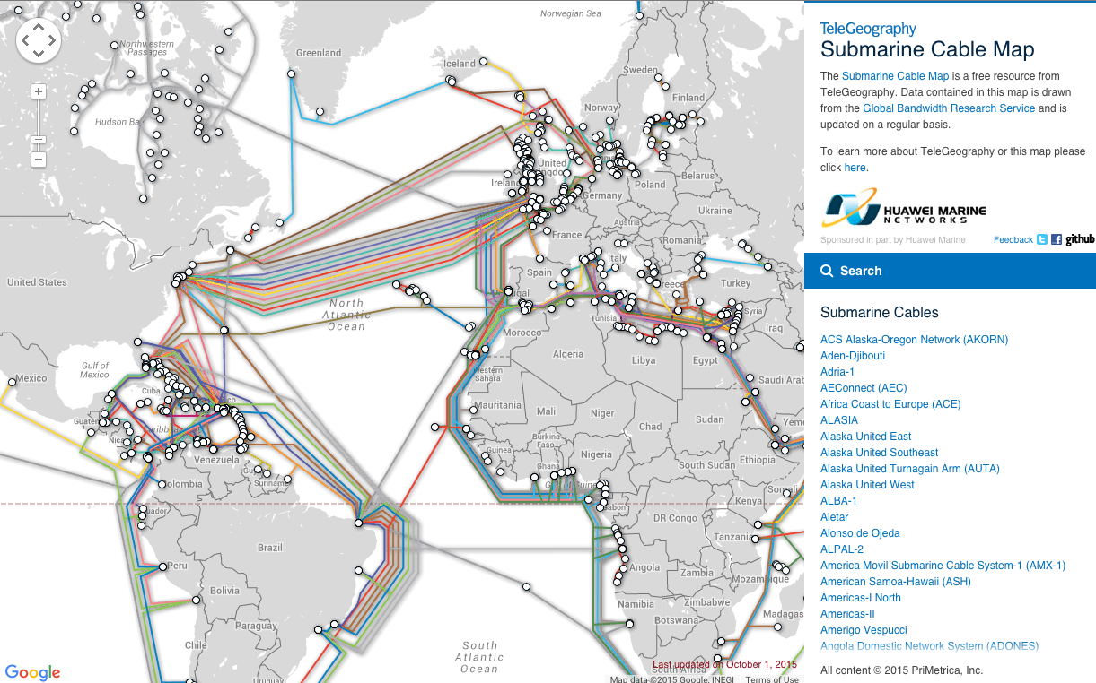 Ο χάρτης των υποβρύχιων καλωδίων στον Ατλαντικό