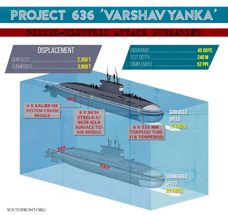 Το ρωσικό υποβρύχιο «Veliky Novgorod», κλάσης Varshavyanka στόχευσε θέσεις του ISIS, σύμφωνα με τη δήλωση του υπουργείου που ανέφεραν ρωσικά μέσα ενημέρωσης. Μια μεγάλη ομάδα ισλαμιστών εξουδετερώθηκε επιτυχώς.