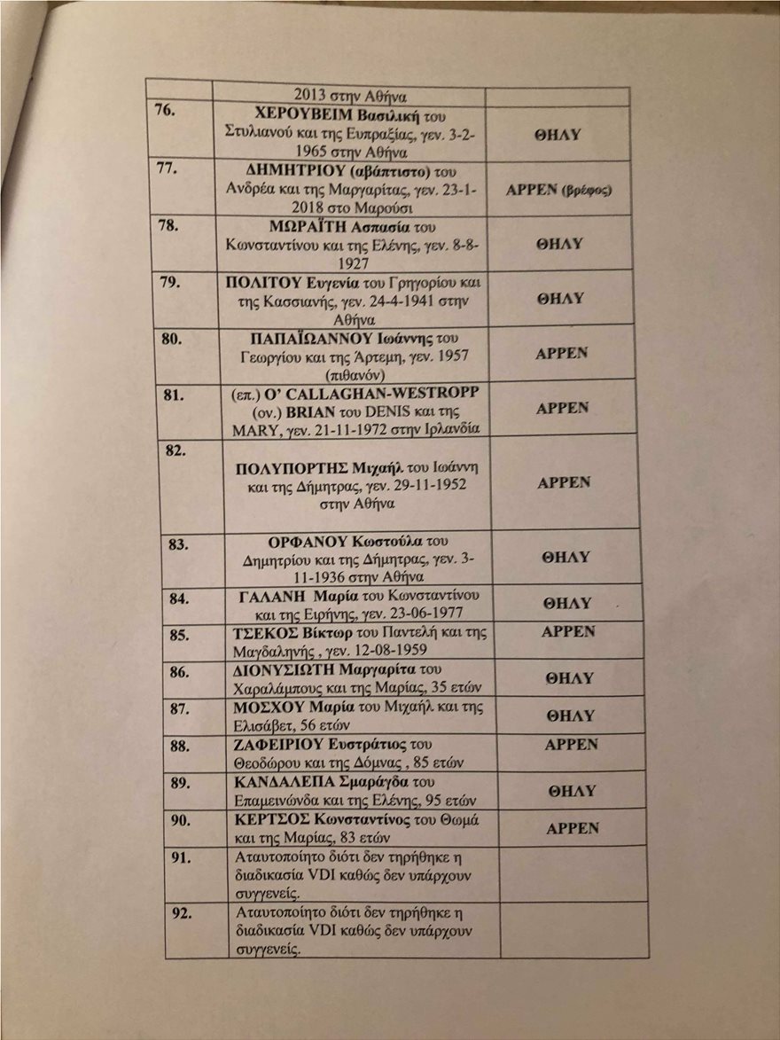 O κατάλογος με τα ονόματα των θυμάτων βρίσκεται και στη Γενική Γραμματεία Πολιτικής Προστασίας και όσοι επιθυμούν να λάβουν γνώση του, μπορούν να υποβάλουν σχετική αίτηση.
