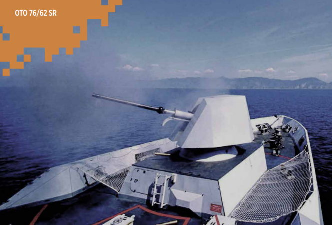 Eπίσης θα τοποθετούνταν πυροβόλο της OTO Melara των 76 χλστ. (κάτω) από αυτά που βρίσκονται σε υπηρεσία στο ΠΝ.