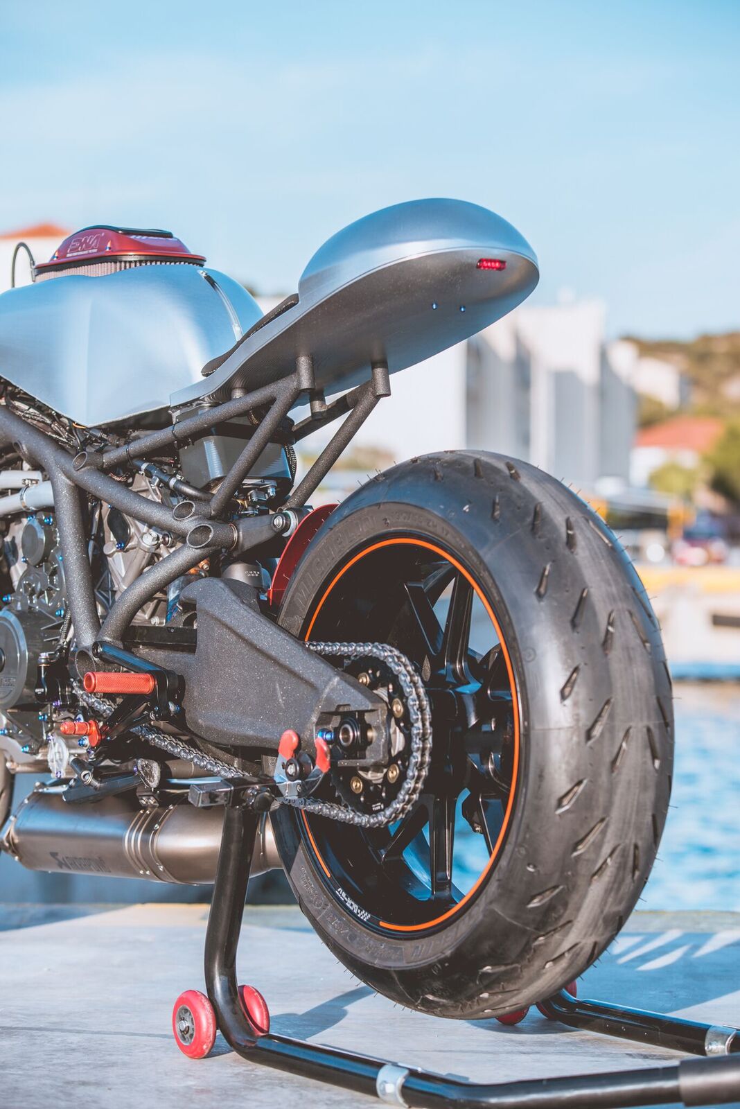 Παρότι είμαστε μια εταιρεία που κατασκευάζει φίλτρα αέρος, “κλέψαμε” λίγο χρόνο από το τμήμα έρευνας και είπαμε να φτιάξουμε μια δικιά μας μοτοσικλέτα (…) και αυτό ακριβώς κάναμε, εξηγεί ο κ. Νικολαΐδης. Η κατασκευή ξεκίνησε κι ολοκληρώθηκε τελικά λίγο πριν την ανοίξει τις πύλες η διεθνής έκθεση μοτοσυκλέτας στην Ιταλίας στις 9 Νοεμβρίου.
