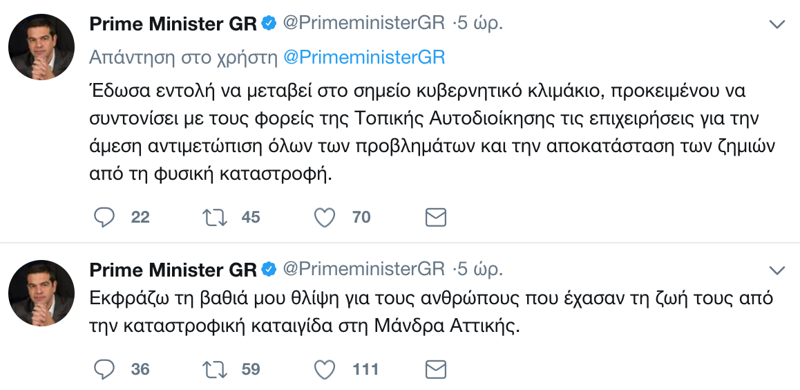 Τέλος, υπογραμμίστηκε πως αποτελεί δέσμευση της κυβέρνηση η αποκατάσταση των προβλημάτων και των καταστροφών.