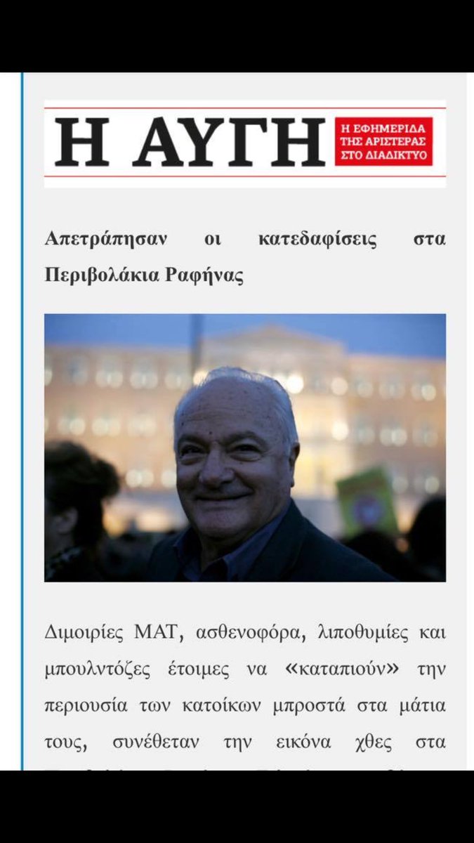 Μάλιστα, η εφημερίδα «Αυγή», επικροτούσε και πρόβαλε το γεγονός ότι δεν έγιναν οι κατεδαφίσεις αυθαιρέτων στα Περιβολάκια Ραφήνας!