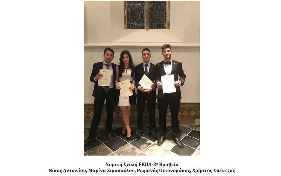 Ειδικότερα, η ομάδα της Νομικής κατέλαβε το 3ο ομαδικό βραβείο, επικρατώντας επί του Κέιμπριτζ, ενώ η φοιτήτρια Μαρίνα-Μαρία-Μαργαρίτα Σιμοπούλου απέσπασε το 3ο βραβείο καλύτερου ρήτορα (Best Oralist Award) μεταξύ των 40 φοιτητών που μετείχαν στο διαγωνισμό.