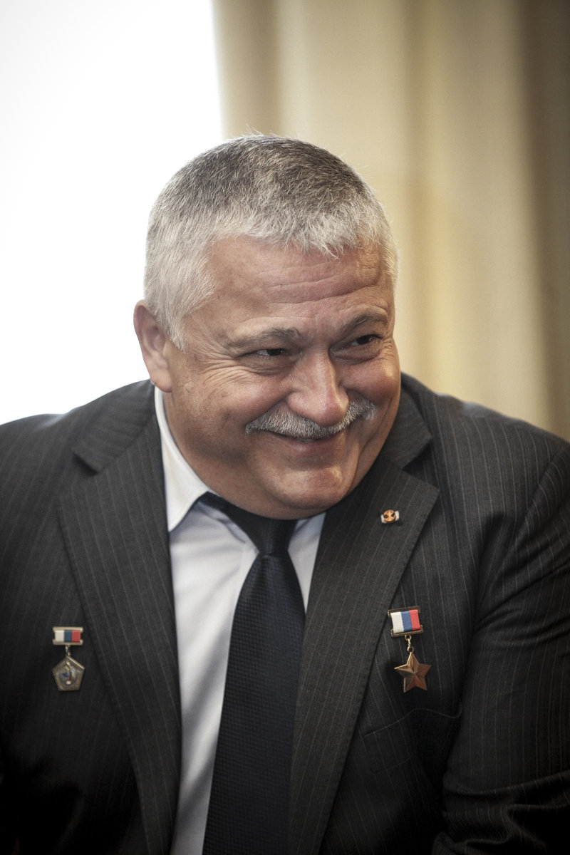 Φυσικά, οι Έλληνες που κατάγονται από την πρώην Σοβιετική Ένωση και Έλληνες από ολόκληρη την Ελλάδα και τον κόσμο που αισθανόμουν την αγάπη τους και την προσοχή τους όλο αυτό το διάστημα που ήμουν εκεί. Γι’ αυτό κύριε Πρόεδρε, επιτρέψτε μου να σας χαρίσω αυτό το μετάλλιο, που χαρίζεται στους συμμετέχοντες στην προετοιμασία και την κατασκευή του συγκεκριμένου διαστημοπλοίου και της αποστολής. Το μετάλλιο αυτό είναι το μετάλλιο της “ΑΡΓΩ”».