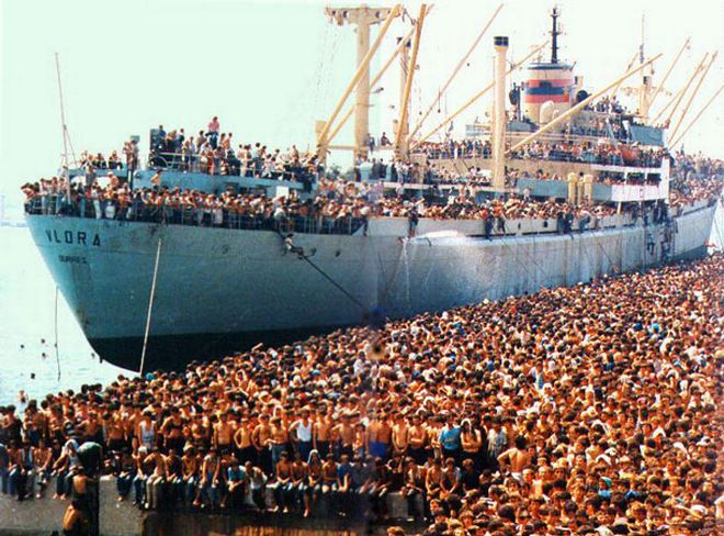 Λίγους μήνες αργότερα στην Ιταλία θα στηνόταν ένα σκηνικό που θα σόκαρε από την μαζικότητα του αλλά και την βαρβαρότητα των Ιταλών τον πλανήτη. Όλα ξεκίνησαν από ένα τρελό και παράτολμο σχέδιο που είχαν κάποιοι στο λιμάνι του Δυρραχίου στις 7 Αυγούστου του 1991. Το πλοίο Vlora (o Αυλώνας στα αλβανικά) είχε δέσει για να ξεφορτώσει 10.000 τόνους ζάχαρη από την Κούβα .