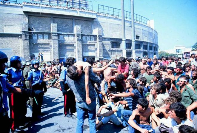 Πίστευαν ότι προσφορά σε ρουχισμό και 50.000 λιρέτες (40 δολάρια ) θα τους ικανοποιούσε. Εκείνοι όμως εξαγριώνονται, σπάνε τα κιγκλιδώματα και ξεχύνονται στους γύρω δρόμους, μέσα σε λίγη ώρα όμως η αστυνομία με χρήση κλομπ και εκφοβιστικών πυροβολισμών τους συγκεντρώνει ξανά στο γήπεδο.