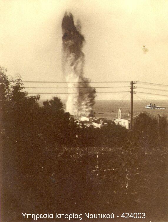 Η φωνή του διακόπηκε από τον πάταγο μιας τρομακτικής έκρηξης η οποία ανασήκωσε το πλοίο από την επιφάνεια σαν παιδικό παιχνίδι! Πολλοί άνδρες έπεσαν στη θάλασσα. Για λίγα λεπτά κανείς δεν γνώριζε τι είχε συμβεί. Κομμάτια σάρκας, φωτιά, καπνοί και βογγητά πληγωμένων συνέθεταν ένα σκηνικό κόλασης. Ο κυβερνήτης ανέκτησε γρήγορα την ψυχραιμία του και έδωσε διαταγές περίθαλψης των τραυματιών, διάσωσης των ανδρών που βρίσκονταν στη θάλασσα και ρυμούλκησης του πλοίου.