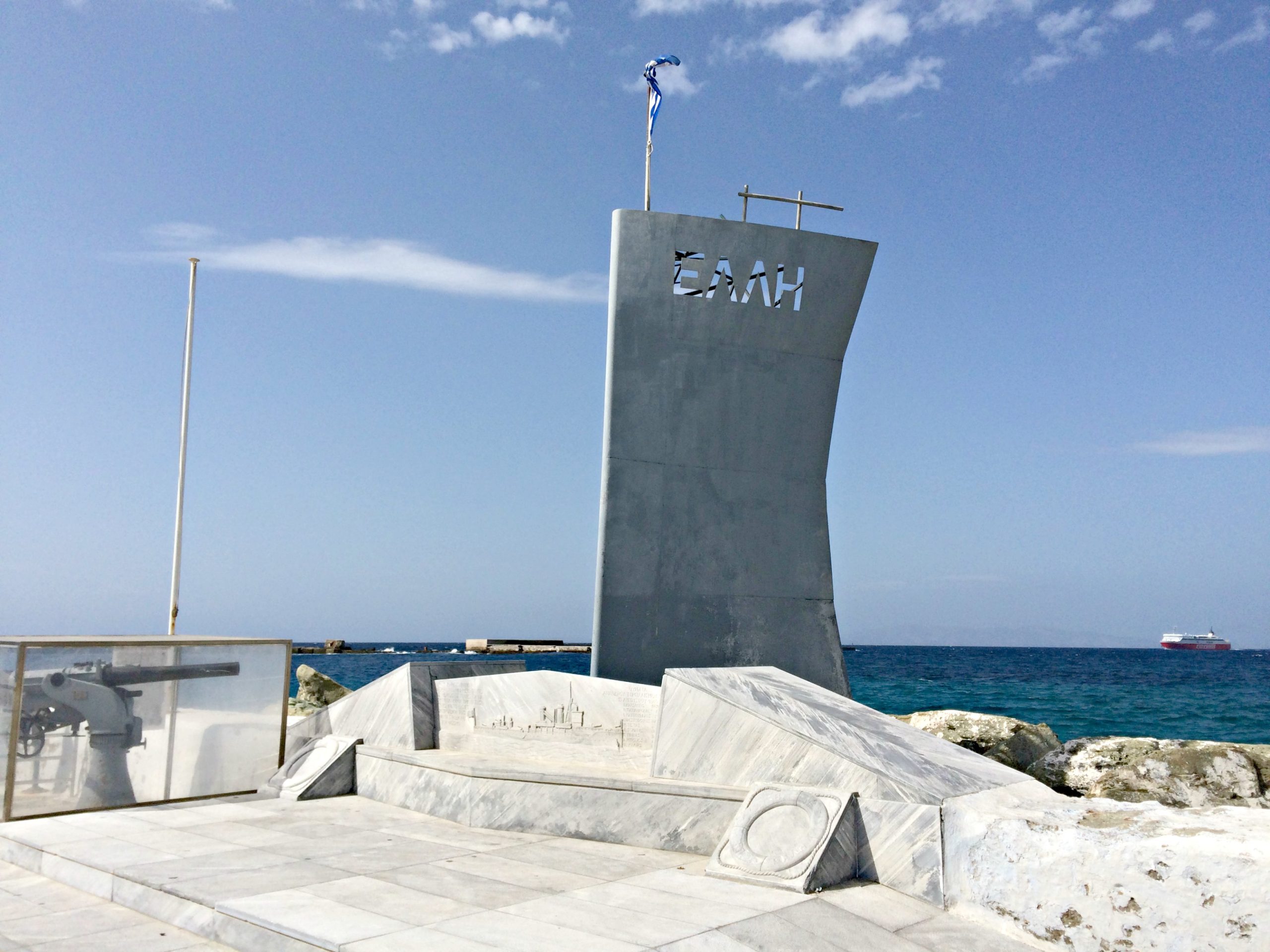 Εν τω μεταξύ άλλες δύο τορπίλες εξερράγησαν πάνω στον λιμενοβραχίονα, έχοντας προφανώς ως στόχο τα επιβατηγά που βρίσκονταν μέσα στο λιμάνι, κατάφορτα με προσκυνητές. Το επιβατηγό ατμόπλοιο «ΕΣΠΕΡΟΣ» με κυβερνήτη τον ηρωικό Γεράσιμο Φωκά έσπευσε σε βοήθεια του πληγωμένου καταδρομικού. Ωστόσο, μετά από δύο ώρες εναγώνιων προσπαθειών το «ΕΛΛΗ» άρχιζε να βυθίζεται, παρασύροντας στον υγρό του τάφο και εννέα μέλη του πληρώματος.