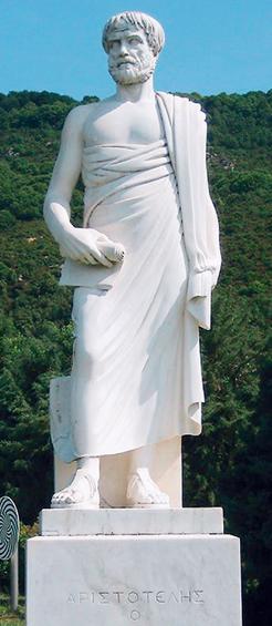 Το άγαλμα του Αριστοτέλη στη γενέτειρά του (αρχαία Στάγειρα). Πρότυπο για τη μορφή του αποτελεί ρωμαϊκό αντίγραφο της προτομής του.