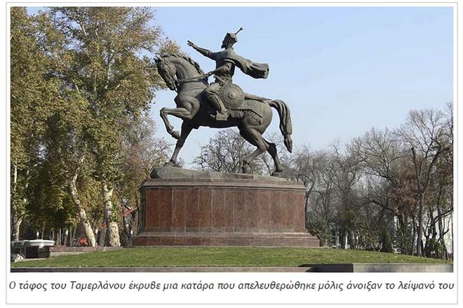 Η κατάρα έλεγε ότι, όποιοι θα «τάραζαν» το αιώνιο ύπνο του θα ζούσε αιματηρούς πολέμους. Η ερευνητική ομάδα άνοιξε τον τάφο και μέσα στο φέρετρο του Ταμερλάνου βρέθηκε μια επιγραφή: