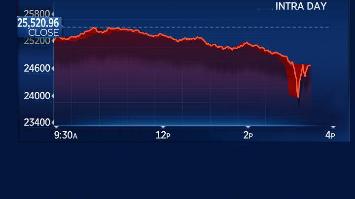 Υπενθυμίζεται πως ο βιομηχανικός δείκτης σημείωσε τη χειρότερη ημερήσια πτώση από το Δεκέμβριο του 2008, χάνοντας 665 μονάδες.