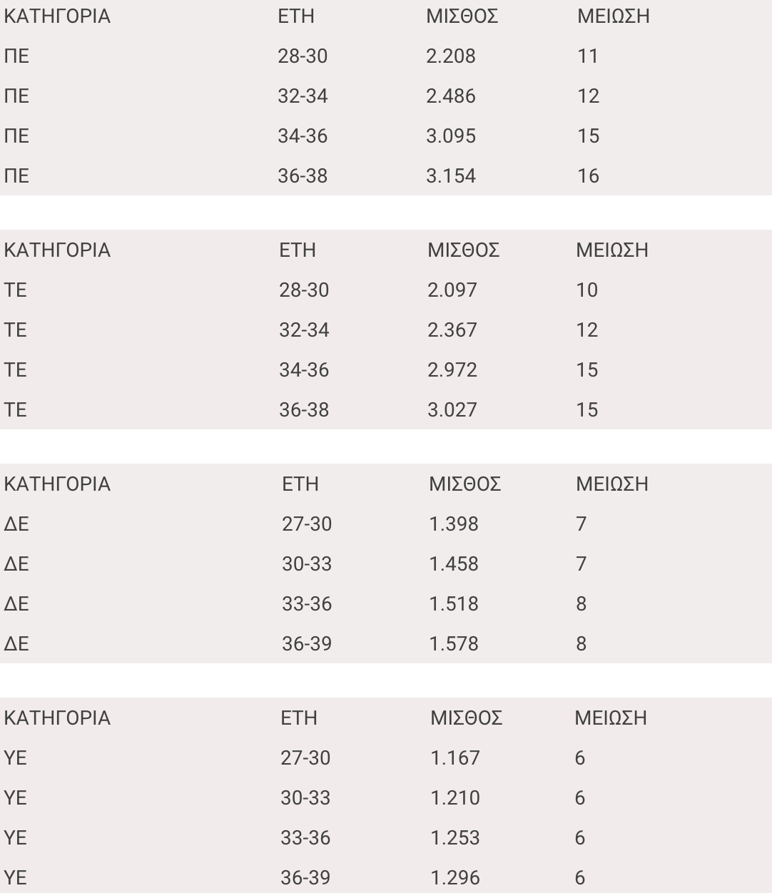 Οι μισθολογικές απώλειες ανά κατηγορία