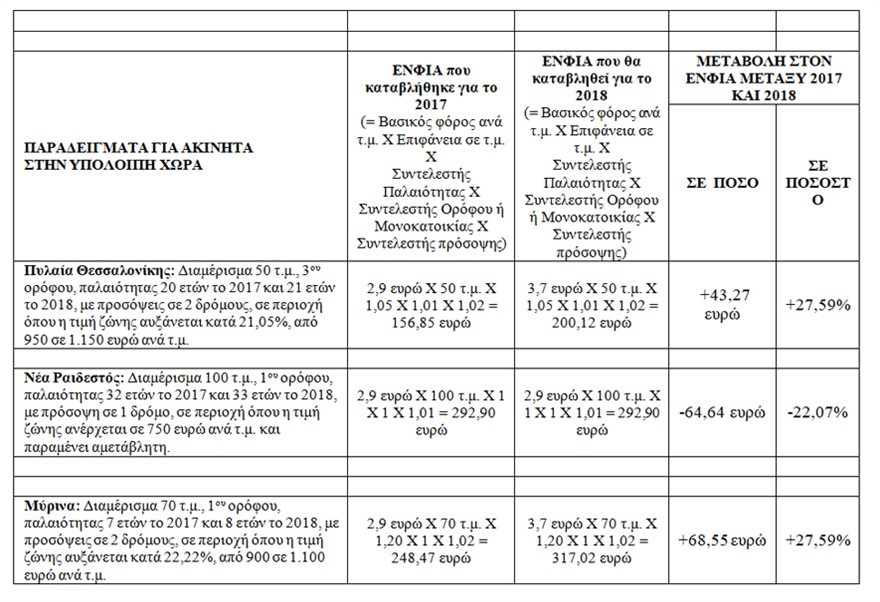 Παρά τις παραπάνω τροποποιήσεις, 946.671 ιδιοκτήτες ακινήτων θα καταβάλουν φέτος αυξημένα ποσά κύριου ΕΝ.Φ.Ι.Α. καθώς θα μεταβούν σε υψηλότερο κλιμάκιο συντελεστή φόρου, επειδή οι αντικειμενικές τιμές των ακινήτων τους αυξάνονται σημαντικά.