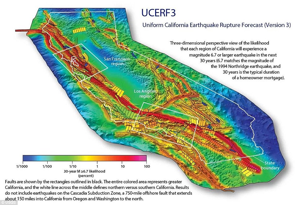 Σύμφωνα με τον Πλούχαρ υπάρχουν 60% πιθανότητες να γίνει ένας μεγάλος σεισμός στην Καλιφόρνια μέσα στα επόμενα 30 χρόνια, πιθανότατα κατά μήκος του ρήγματος Χέιγουορντ.