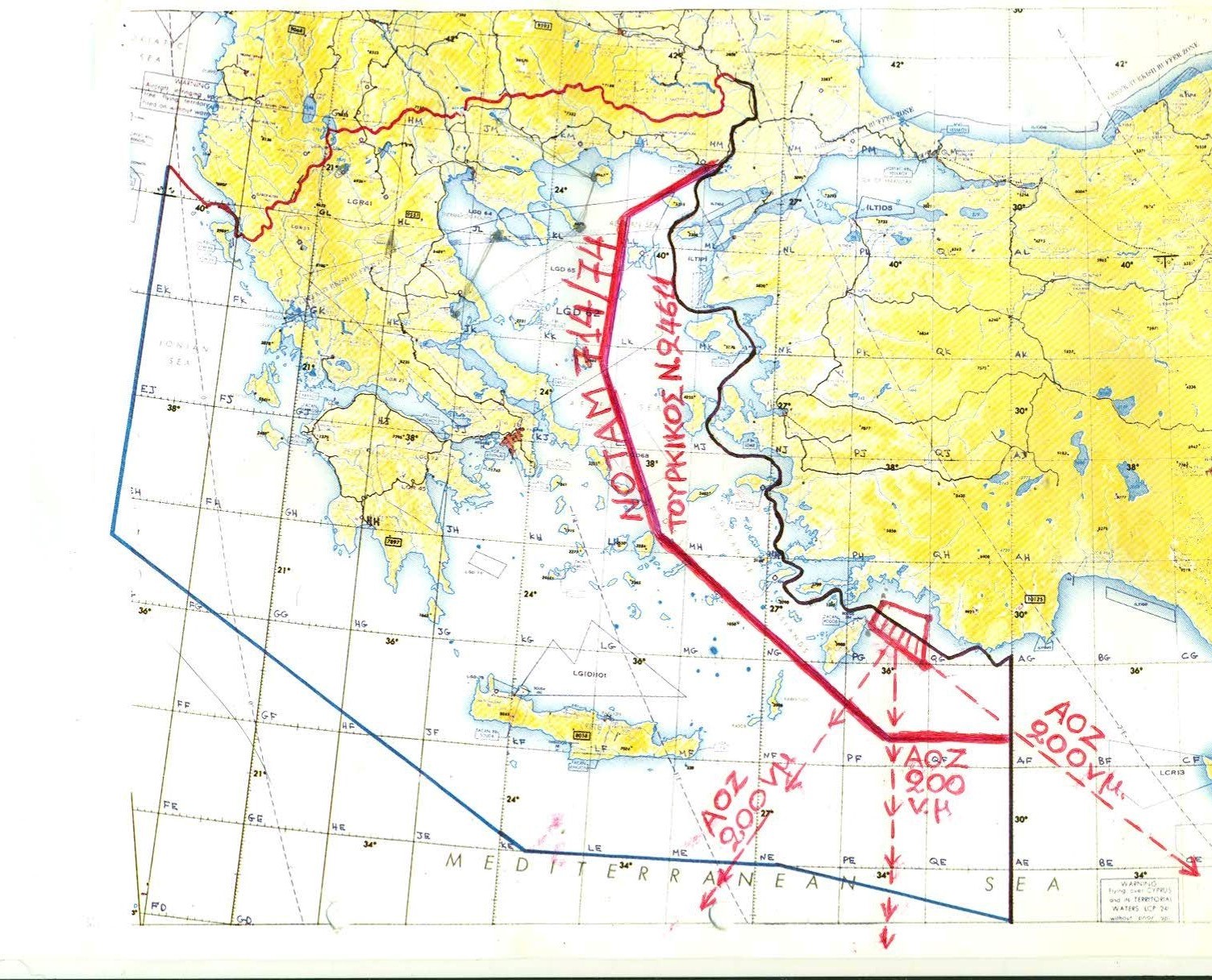 Όπως φαίνεται στον χάρτη τμήματα της περιοχής των τουρκικών ασκήσεων εισέρχεται 26νμ εντός του FIR Αθηνών και εκτείνεται 37νμ νοτίως των τουρκικών χωρικών υδάτων των 6νμ.