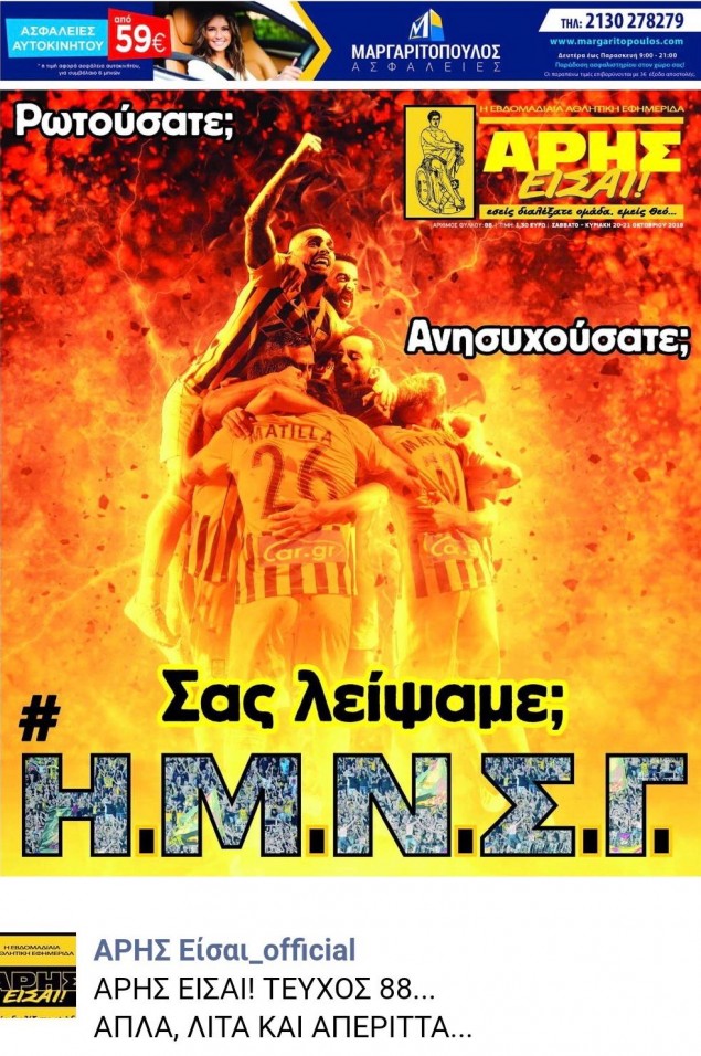 Από… όποια πλευρά κι αν το δει κανείς, το εξώφυλλο της εφημερίδας του Άρη είναι το θέμα της ημέρας στη Θεσσαλονίκη καθώς κυκλοφορεί με τίτλο που μάλλον δεν έχει ξαναγραφτεί στην ιστορία του Τύπου.