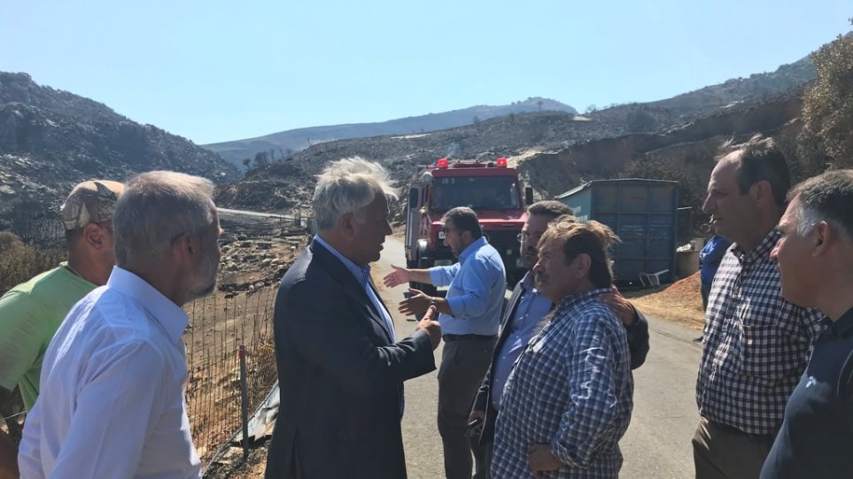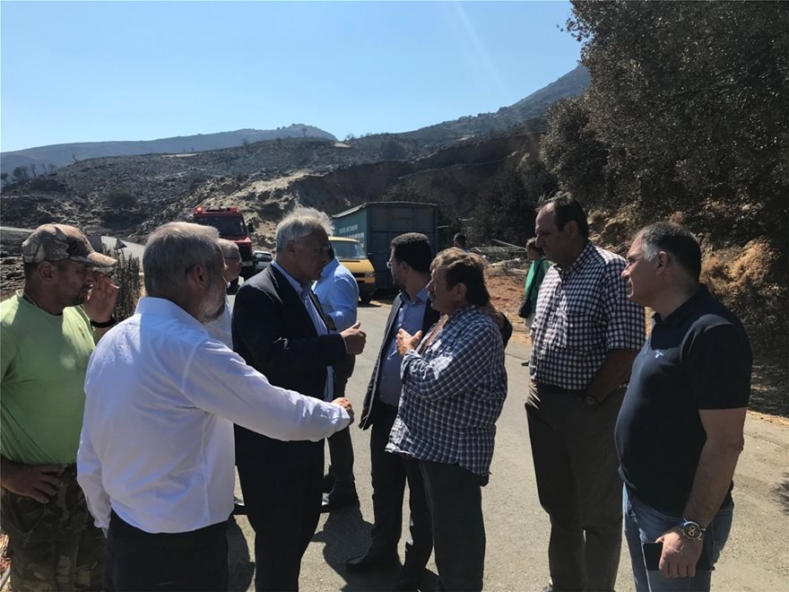 Ο αρμόδιος υπουργός βρέθηκε στο Δήμο Ανατολικής Μάνης όπου επισκέφθηκε όλες τις περιοχές που επλήγησαν από τη φωτιά και συνομίλησε με κτηνοτρόφους, καλλιεργητές ελιών και μελισσοκόμους, καθώς έχουν καταγραφεί καταστροφές σε ποιμνιοστάσια, μελίσσια και σε ελαιώνες.