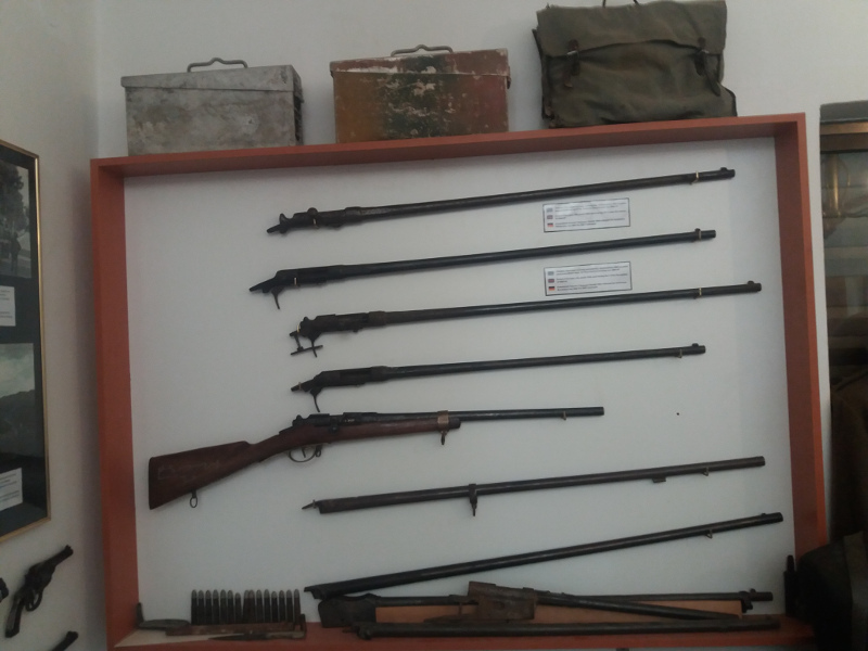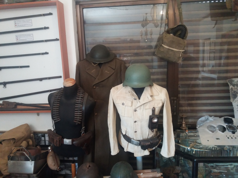 Πυροβόλα, πυρομαχικά, κράνη, στολές, εξαρτύσεις, όπλα, τμήματα από Βρετανικά και Γερμανικά οχήματα, από άρματα μάχης, μοτοσικλέτες, κομμάτια από αεροσκάφη συνθέτουν την εικόνα της ιστορίας, μαζί με εκατοντάδες φωτογραφίες και έγγραφα, τα περισσότερα από την περίοδο της Μάχης της Κρήτης, αλλά ακόμα και από τον Μακεδονικό Αγώνα όπου οι Κρητικοί είχαν δώσει ηχηρό «παρών».