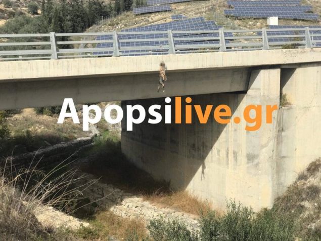 To σώμα του άτυχου τετράποδου, όπως φαίνεται και στις φωτογραφίεςαπό το apopsilive.gr, βρίσκεται σε προχωρημένη σήψη κάτι που μαρτυρά πως είναι αρκετές ημέρες κρεμασμένος στην γέφυρα.