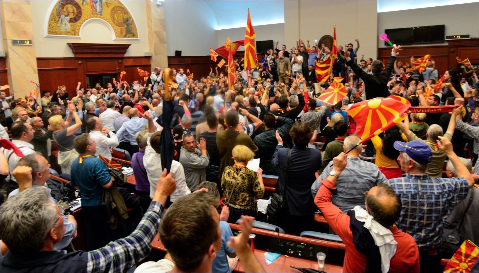 Τουλάχιστον εκατό κάμερες είναι τοποθετημένες στον εξώστη της σκοπιανής Βουλής αναμένοντας τη στιγμή που θα ξεκινήσει η πολυαναμενόμενη ψηφοφορία για τις συνταγματικές αλλαγές, στη βάση της συμφωνίας των Πρεσπών.