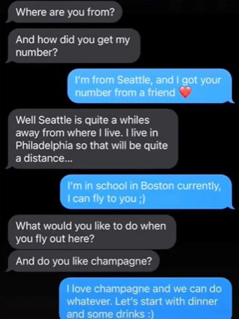 «Είμαι στο σχολείο στη Βοστώνη αυτή τη στιγμή, μπορώ να πετάξω σε εσένα», του απάντησε στη συνέχεια, με τον διάλογο μεταξύ τους να εξελίσσεται.