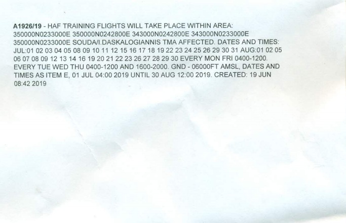 Ήδη η Αθήνα άρχισε να εκδίδει ΝΟΤΑΜ όχι μόνον για τουρκικές αλλά και..για ελληνικές εκπαιδευτικές πτήσεις, (σ.σ. αφού το Μνημόνιο εφαρμόζεται υποχρεωτικώς και από τις δύο πλευρές).