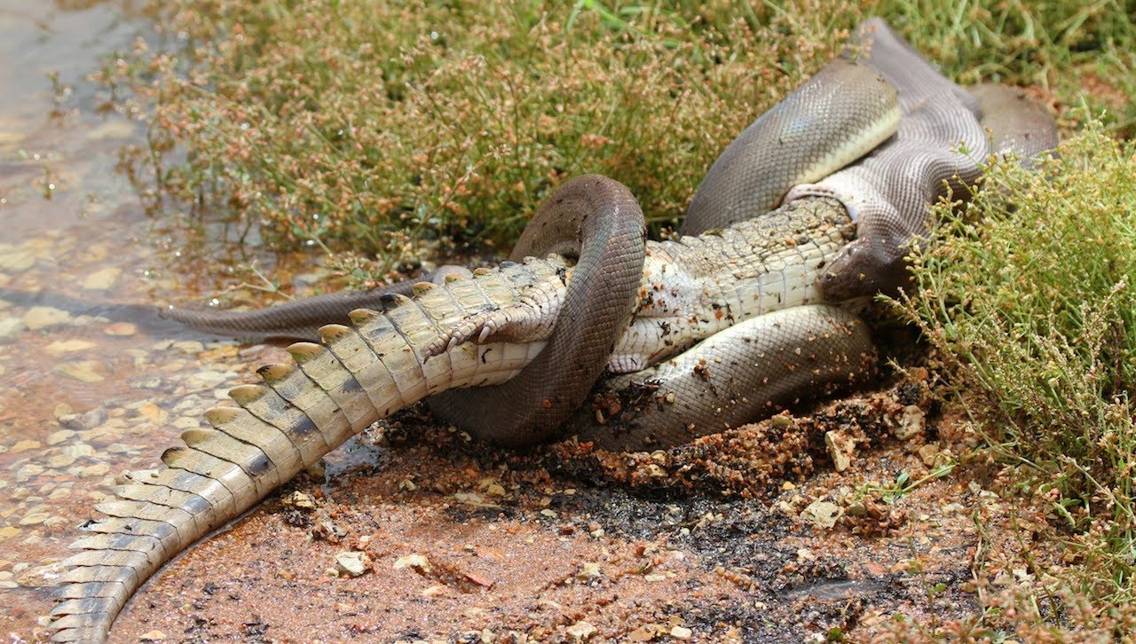 Σε τέτοιες μάχες είναι δύσκολο να διακρίνεις ποιος θα είναι ο νικητής. Εδώ φαίνεται ξεκάθαρα πως το φίδι δεν αστειευόταν καθόλου αφού κατάπιε ολόκληρο τον κροκόδειλο.
