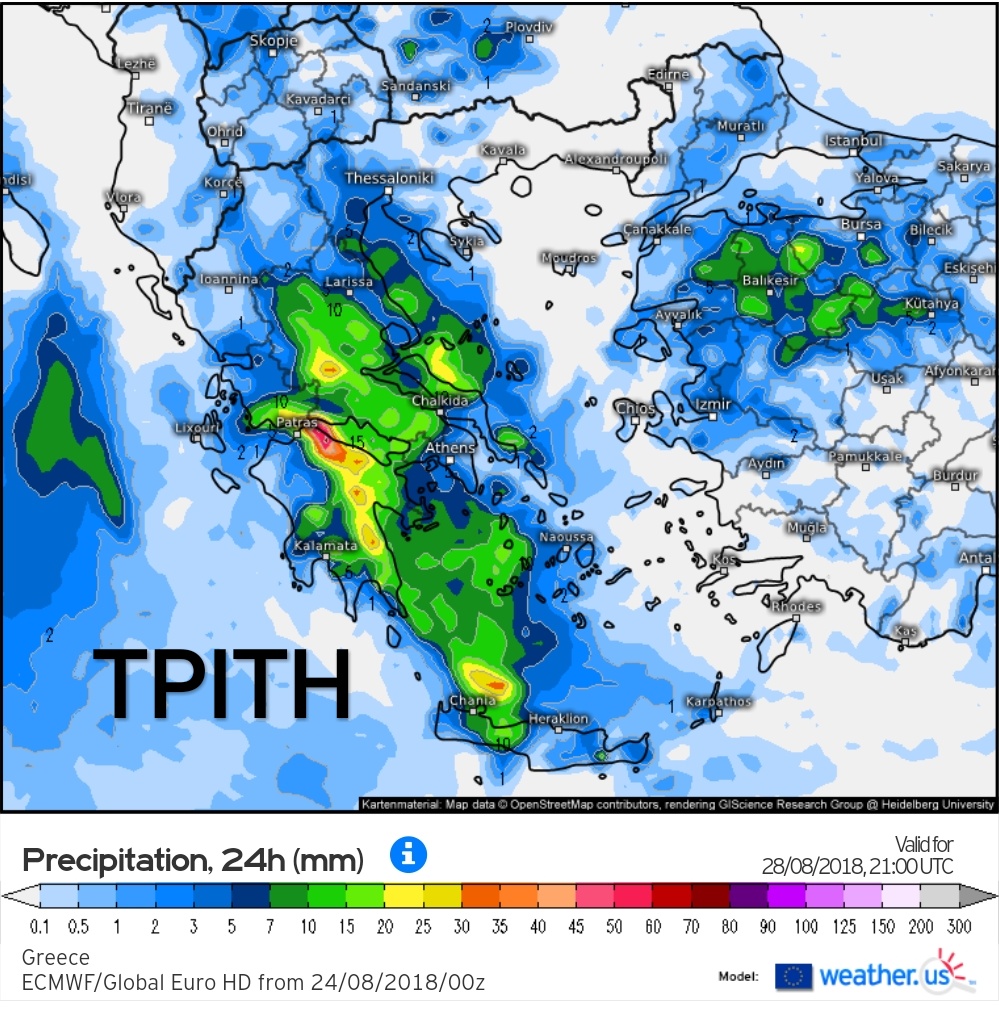 «Πρόσκαιρη επιδείνωση του καιρού αύριο Δευτέρα (27-08-2018) και μεθαύριο Τρίτη (28-08-2018) με κύρια χαρακτηριστικά τις βροχές και καταιγίδες οι οποίες κατά τόπους θα είναι ισχυρές και δεν αποκλείεται να συνοδεύονται από χαλαζοπτώσεις και πολύ ισχυρούς ανέμους.