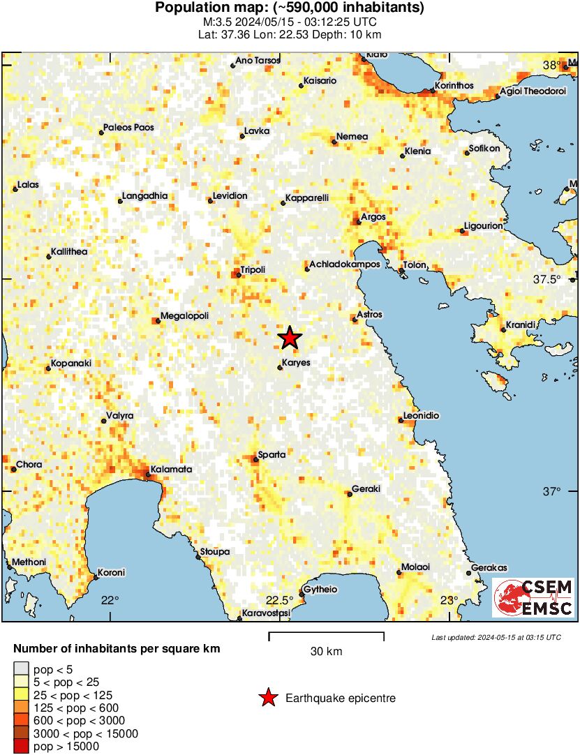 Στις 06:12 το πρωί της Τετάρτης (15/5), σημειώθηκε σεισμική δόνηση μεγέθους 3,5 βαθμών της κλίμακας Ρίχτερ σε περιοχή του νομού Λακωνίας και Αρκαδίας.