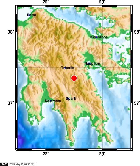 Το ακριβές επίκεντρο της δόνησης εντοπίζεται στα 18 χλμ. δυτικά – νοτιοδυτικά από το Άστρος Κυνουρίας.