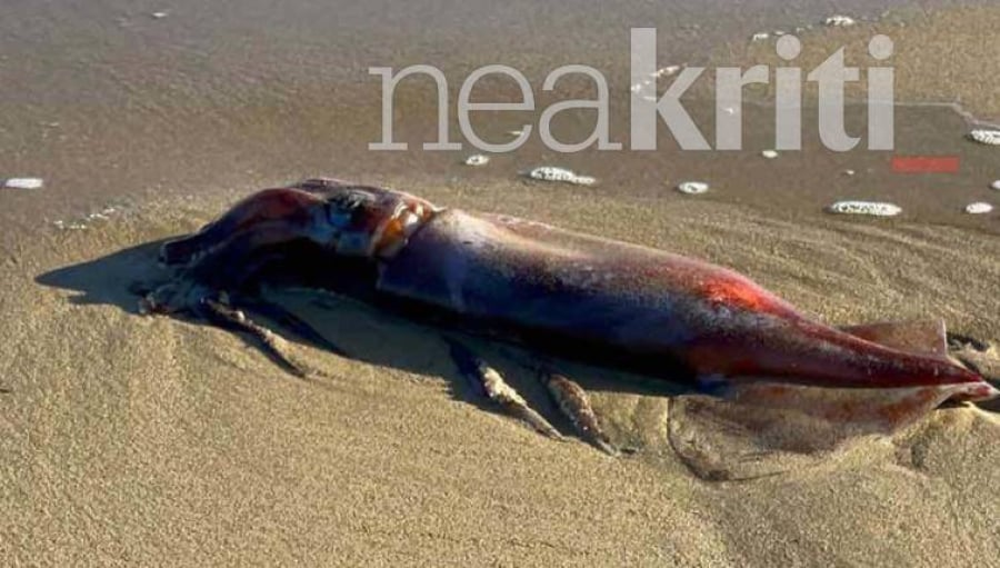 Ένα απίστευτο περιστατικό σημειώθηκε το πρωί της Τρίτης στην Κρήτη, όταν ένας επιχειρηματίας βρήκε σε παραλία της Σταλίδας ένα τεράστιο καλαμάρι που είχε ξεβράσει η θάλασσα.