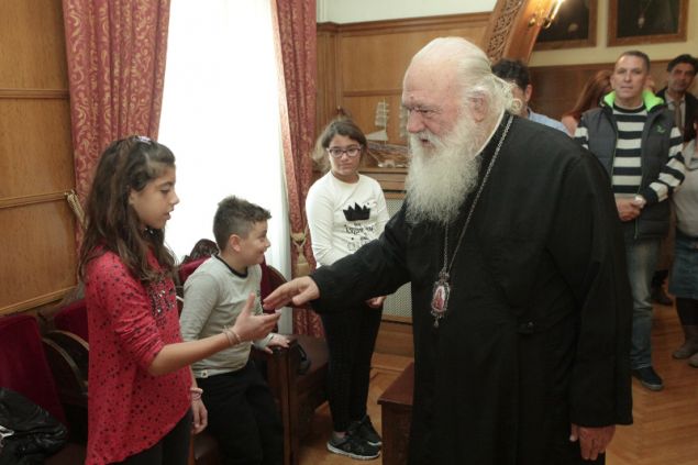 Τον Αρχιεπίσκοπο Αθηνών και πάσης Ελλάδος Ιερώνυμο επισκέφθηκαν σήμερα μαθητές της ΣΤ’ τάξης του δημοτικού σχολείου Αγίου Αρσενίου Νάξου, με την επιθυμία να συνομιλήσουν μαζί του.