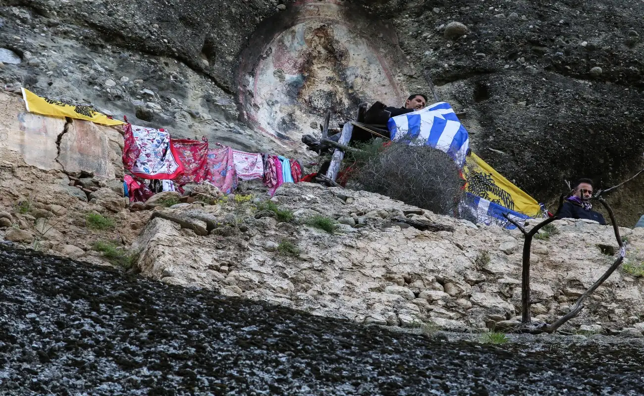 Κάθε χρόνο, και πριν την έναρξη της Θείας Λειτουργίας, αρκετοί πιστοί κάνουν αναρρίχηση στον απότομο βράχο για να κρεμάσουν μαντήλια, εν είδει τάματος, στην ερειπωμένη σκήτη, ενώ, παράλληλα, κατεβάζουν τα μαντήλια της προηγούμενης χρονιάς που δίδονται ως φυλακτό και ευλογία στους προσκυνητές που τιμούν τον Άγιο.