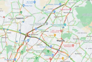 20΄-25΄από κόμβο Μεταμόρφωσης έως κόμβο Πεντέλης στο ρεύμα προς Αεροδρόμιο,