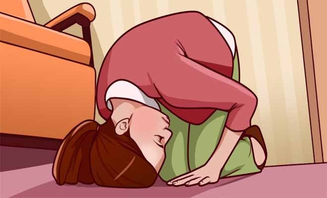 Για να αντιμετωπίσετε τον ίλιγγο, αρχικά γονατίστε. Γυρίστε το κεφάλι σας προς τα πάνω, βλέποντας το ταβάνι και στη συνέχεια τοποθετήστε το στο πάτωμα, σαν να προετοιμάζεστε να κάνετε κωλοτούμπα.
