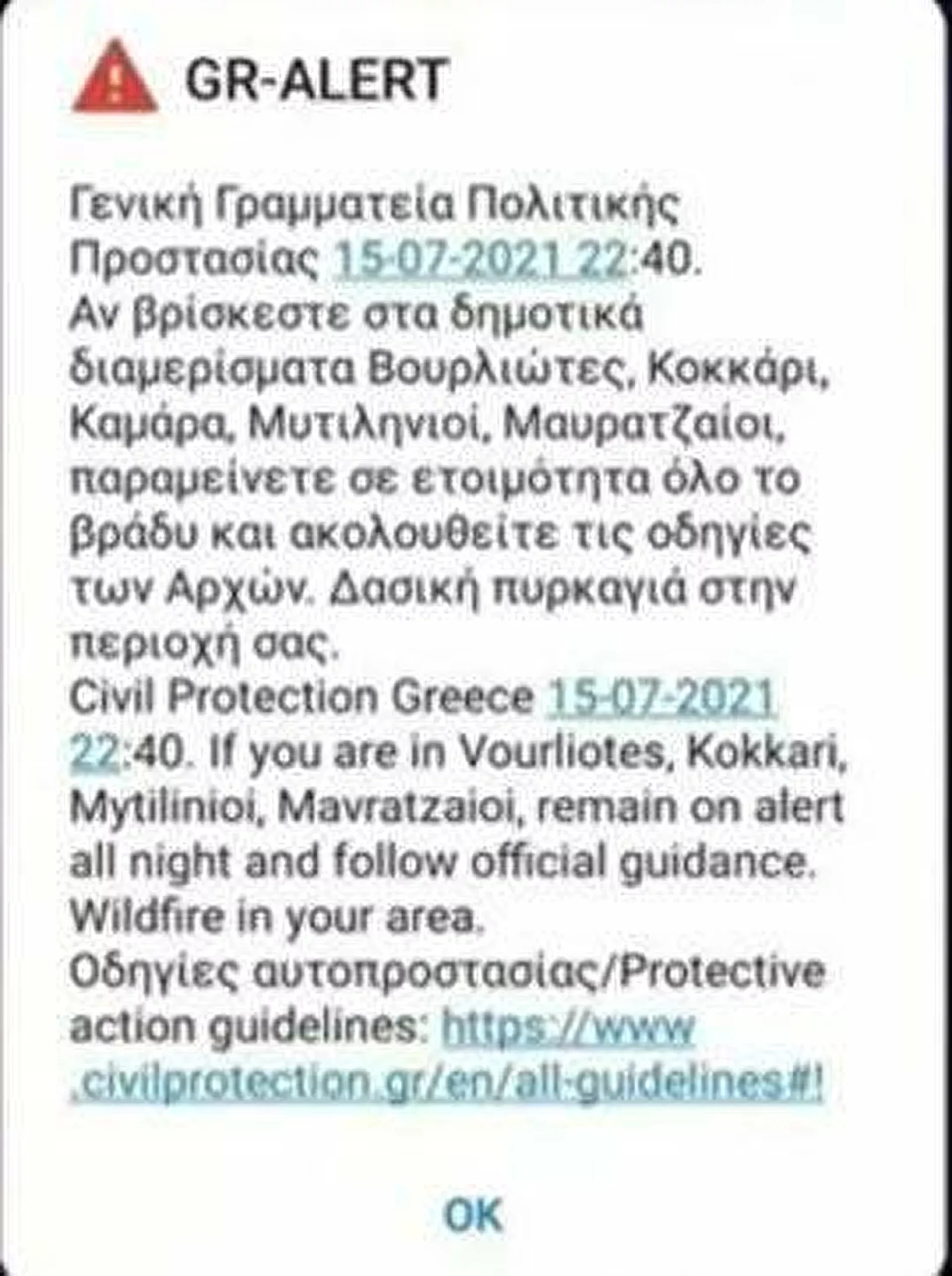 Ειδικότερα, οι κάτοικοι σε Κοκκάρι, Καμάρα, Μυτιληνιούς, Βουρλιώτες και Μαυρατζαίους ενημερώθηκαν για τον κίνδυνο και κλήθηκαν να παραμείνουν σε ετοιμότητα και να ακολουθούν τις οδηγίες των Αρχών.