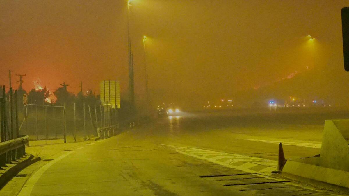 Η μάχη δίνεται για να μην καταφέρει η φωτιά να φτάσει σε Καπανδρίτι και Άγιο Στέφανο, που βρίσκονται από την απέναντι πλευρά της Εθνικής Οδού.