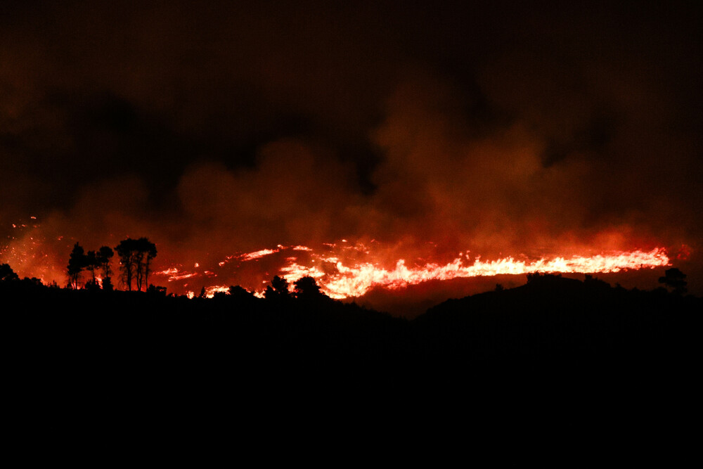 Η μάχη δίνεται για να μην καταφέρει η φωτιά να φτάσει σε Καπανδρίτι και Άγιο Στέφανο, που βρίσκονται από την απέναντι πλευρά της Εθνικής Οδού.