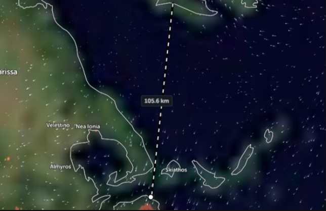Σημειώνεται ότι η χιλιομετρική απόσταση του εν λόγω οικισμού της Χαλκιδικής από τις ακτές της Βόρειας Εύβοιας είναι σε ευθεία 105,6 χλμ!