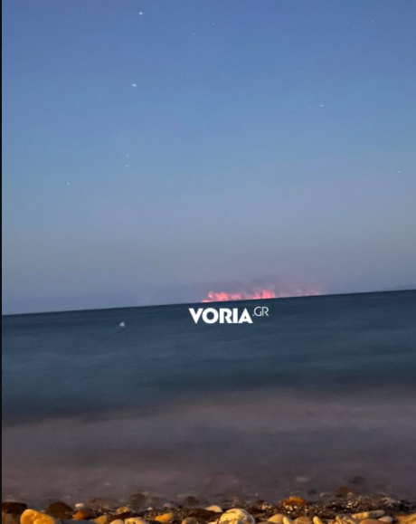 Αναγνώστης της Voria.gr είδε από τον οικισμό της Μόλα Καλύβα στην Κασσάνδρα Χαλκιδικής και φωτογράφησε το πύρινο τείχος που έχει υψωθεί από το μέτωπο στο βόρειο τμήμα της Εύβοιας, με το θέαμα να προκαλεί δέος, για την έκταση και το μέγεθος της τραγωδίας.