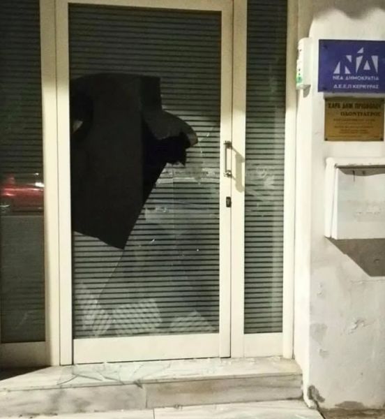 Επίθεση βανδαλισμού από αγνώστους δέχθηκαν τα ξημερώματα τα γραφεία της Νέας Δημοκρατίας στην οδό Μητροπολίτου Μεθοδίου, στο κέντρο της πόλης της Κέρκυρας.