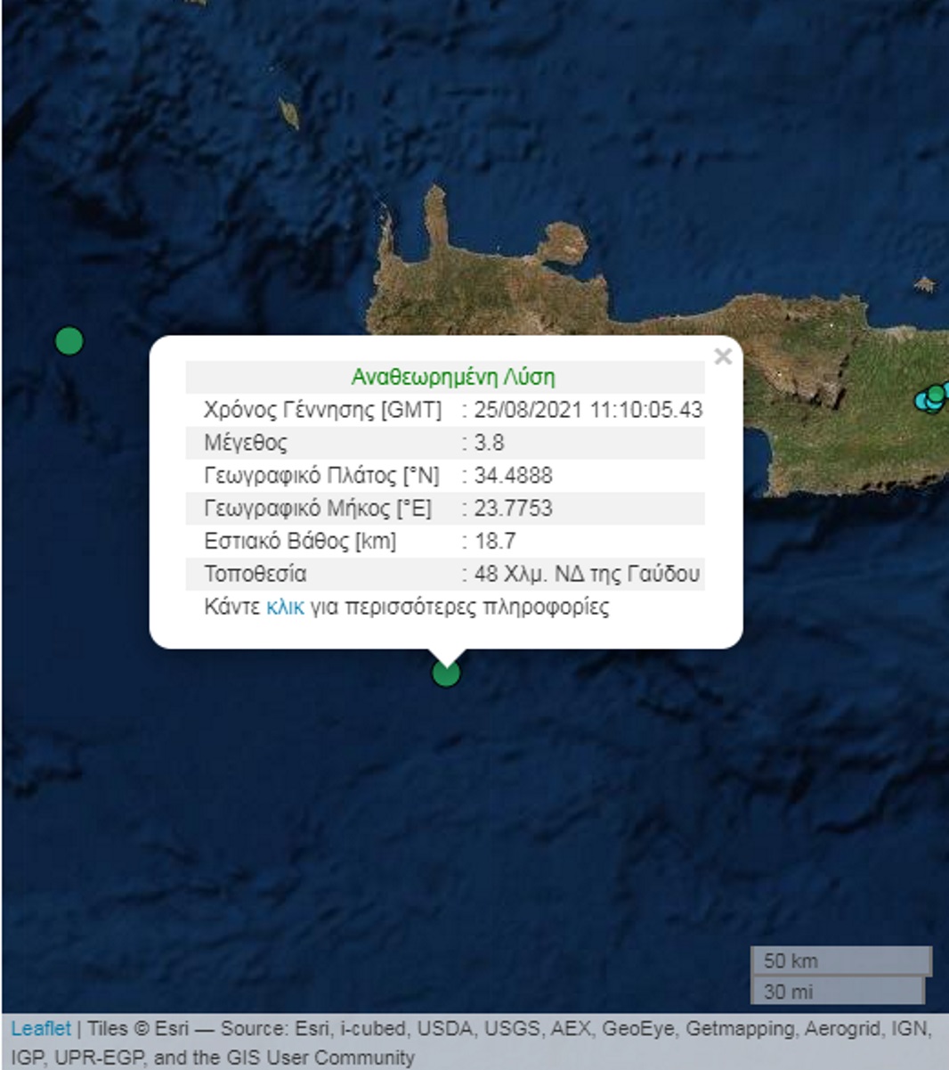 Ο σεισμός στη Γαύδο έχει μέγεθος 3,8 βαθμούς της κλίμακας Ρίχτερ και έγινε 48 χιλιόμετρα νοτιοδυτικά του νησιού στο Λιβυκό Πέλαγος.