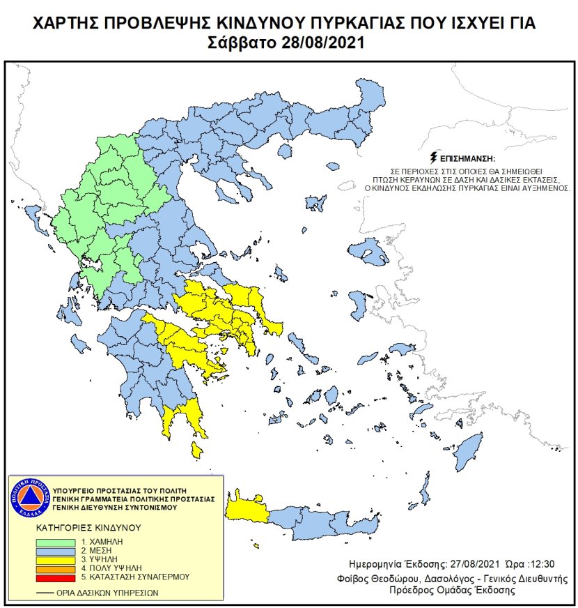 Ο Χάρτης Πρόβλεψης Κινδύνου Πυρκαγιάς για το Σάββατο 28 Αυγούστου