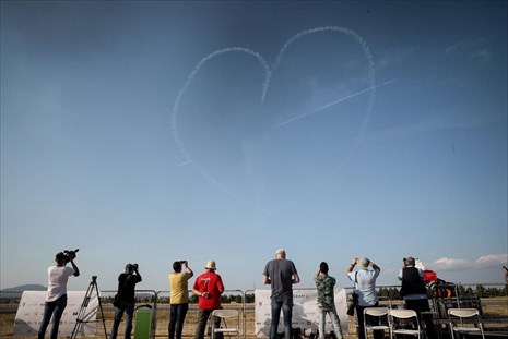 Μετά από μια άκρως εντυπωσιακή επίδειξη των πτητικών του δυνατοτήτων, ο Γάλλος πιλότος Jerome Thoule, αναφώνησε από τον ασύρματό του «Ελλάδας – Γαλλία – Συμμαχία», ενθουσιάζοντας τα πλήθη στην αεροπορική βάση της Τανάγρας.