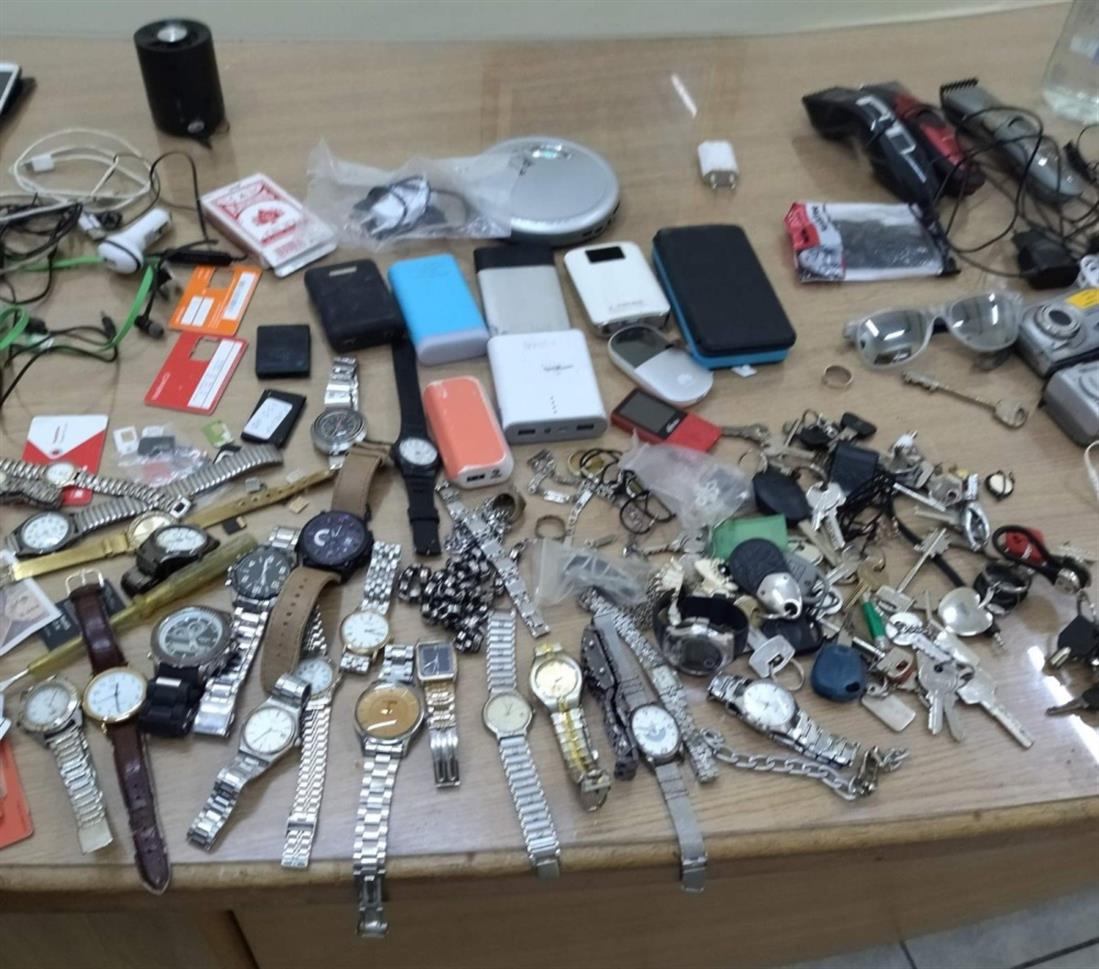 24 ωρολόγια χειρός, 7 αλυσίδες χεριού και λαιμού, 6 περιλαίμια και 3 ξυριστικές μηχανές.