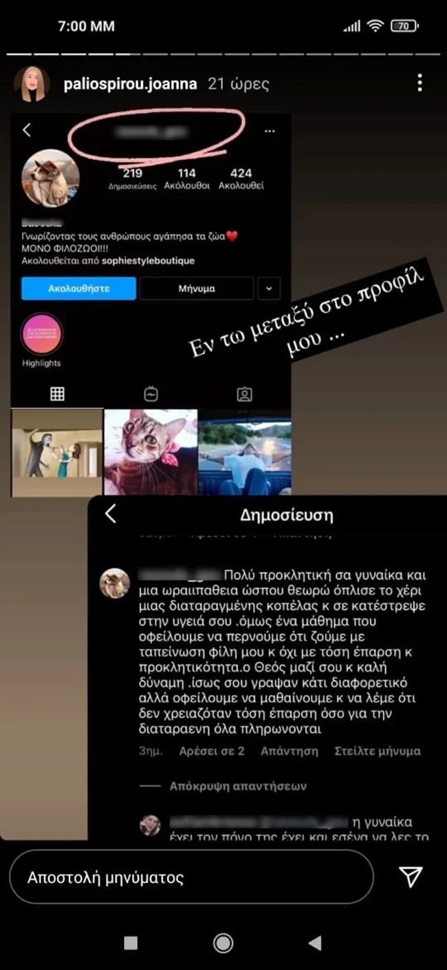 Αύριο Τετάρτη, ξεκινάει η πολύκροτη δίκη για την υπόθεση της επίθεσης με βιτριόλι, ωστόσο ορισμένοι με περίσσιο θράσος, τολμούν να κατηγορήσουν την ίδια την Ιωάννα για τον εφιάλτη που ζει. Κι ενώ δέχεται εκατοντάδες μηνύματα συμπαράστασης, η Ιωάννα έμεινε έκπληκτη όταν είδε ένα σχόλιο στο προφίλ της στο Instagram. Στο σχόλιο κάποιος κάνει λόγο για «ωραιοπάθεια», «προκλητικότητα» και «έπαρση» της Ιωάννας, που όπλισαν το χέρι της δράστριας να της επιτεθεί.