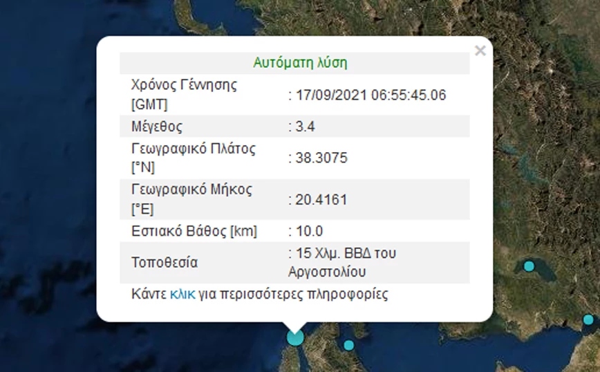 Ισχυρός σεισμός 3,4 Ρίχτερ με επίκεντρο την Κεφαλονιά σημειώθηκε το πρωί της Παρασκευής.